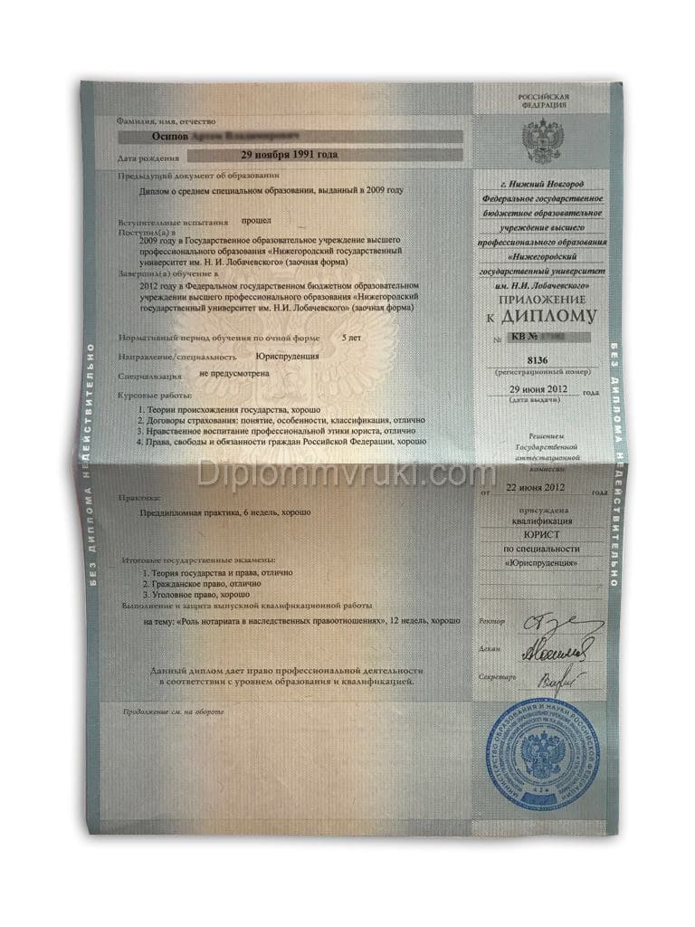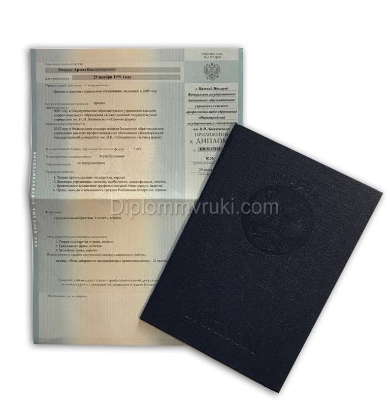 На нашем сайте вы можете выбрать и приобрести любой диплом о высшем образовании с 2012 по 2013 годы. Наша услуга необходима тем людям, которые утеряли диплом или тем, кто срочно нуждается в документе. Клиент может выбрать любой ВУЗ и специальность.