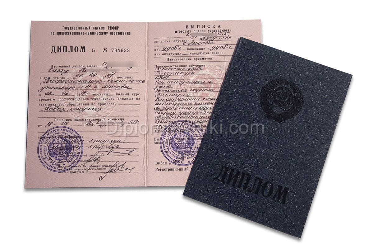 В 1994 году политехнические училища были упразднены, однако, спрос на дипломы ПТУ до 1994 года только вырос. По нескольким вполне понятным причинам: считается, что советское образование с его нацеленностью на практические навыки, а не теорию, выгодно отличалось от образования современного российского. Поэтому специалисты, имеющие именно такие знания, сегодня в цене. Если у вас появилась возможность карьерного роста или перевода на более выгодную должность, советуем вам купить диплом ПТУ СССР до 1994 года в нашей компании. Также это может понадобится, если вы потеряли свой документ, а он срочно понадобился, а восстановление займет много времени